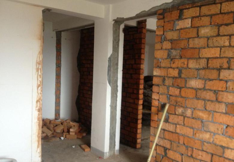 原来的墙基本上都敲光了,背下去的砖堆成一座山。