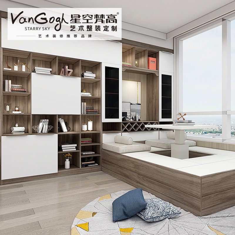 【星空梵高】现代简约整体定制榻榻米 塔特森林·迈阿密胡桃+玉石白榻榻米