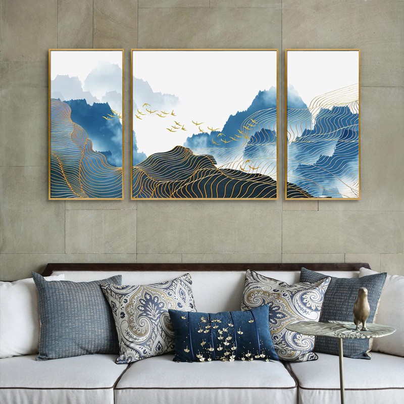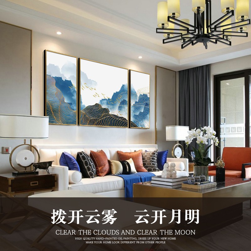简约北欧客厅三联画客厅沙发背景墙水墨画晶瓷画 纯手绘油画 鸿雁长飞