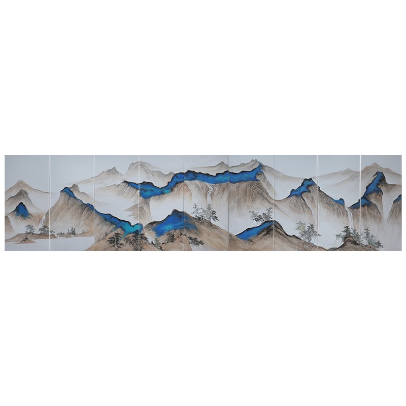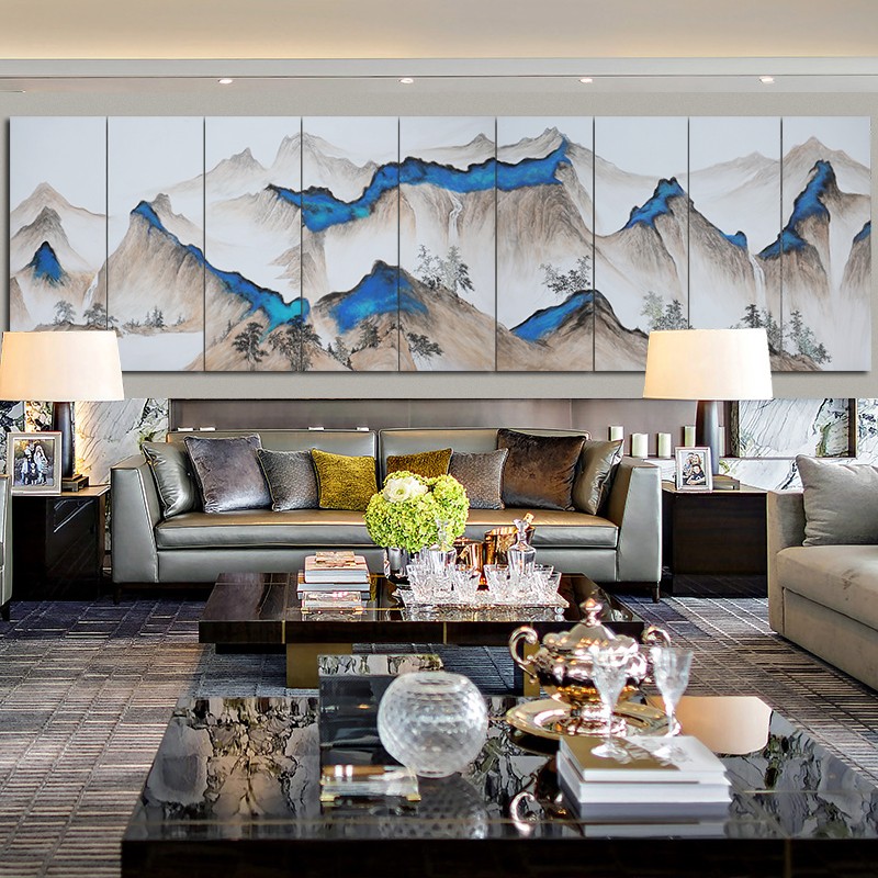 新中式会议室酒店山水风景壁画大型高端定制巨幅手绘装饰画 南山
