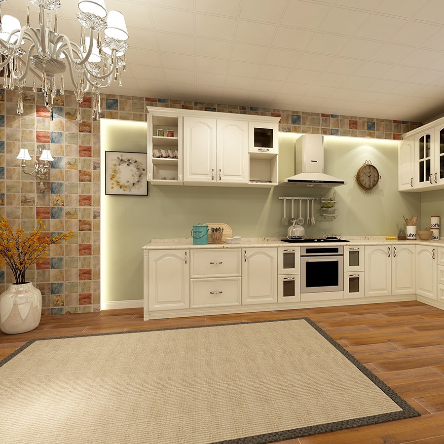 【星空梵高】现代简约整体定制橱柜石英石台面 模压-颗粒横纹白布格