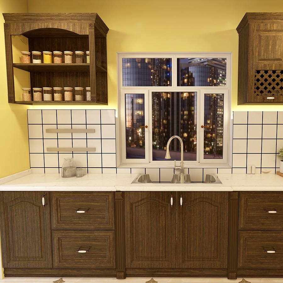 【星空梵高】现代简约整体定制橱柜石英石台面 实木-横纹028