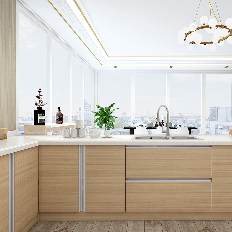 【星空梵高】现代简约整体定制橱柜石英石台面 双饰面-F-154横纹颗粒