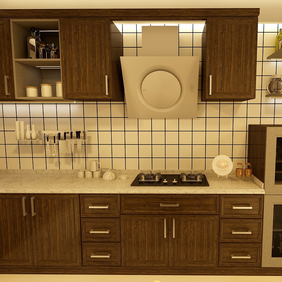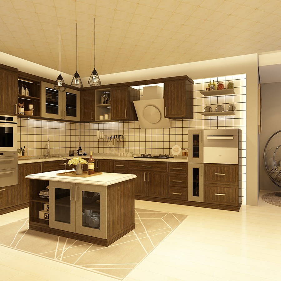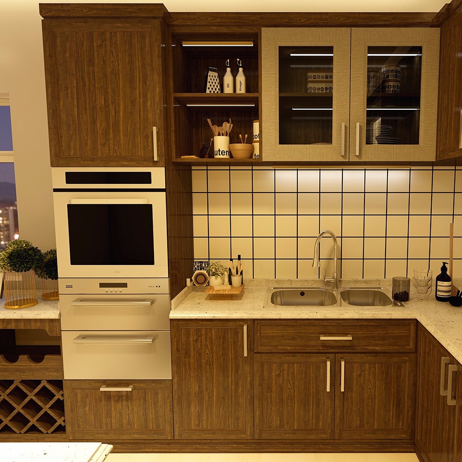 【星空梵高】现代简约整体定制橱柜石英石台面 双饰面-夏特胡桃