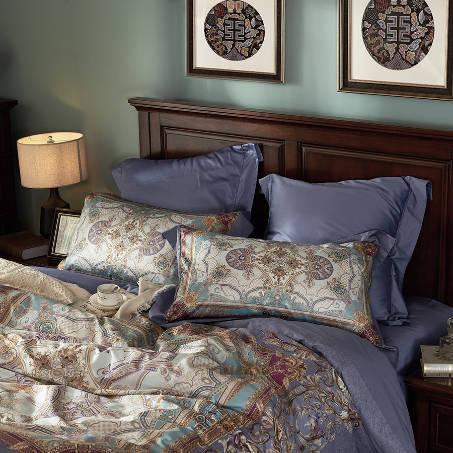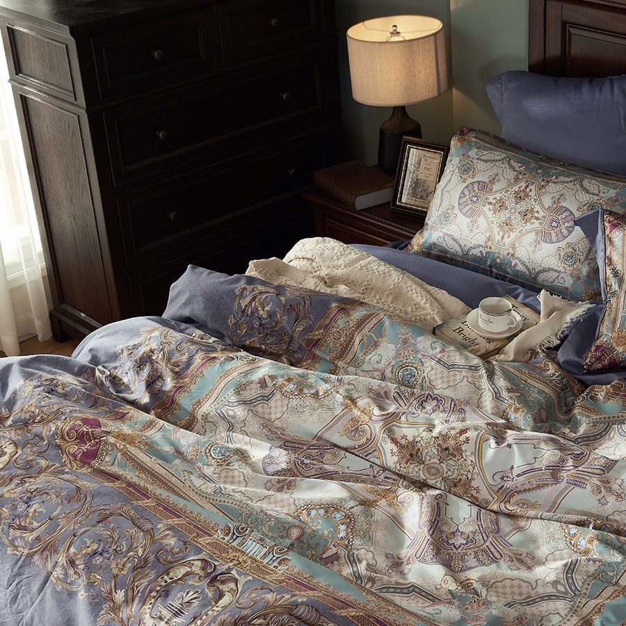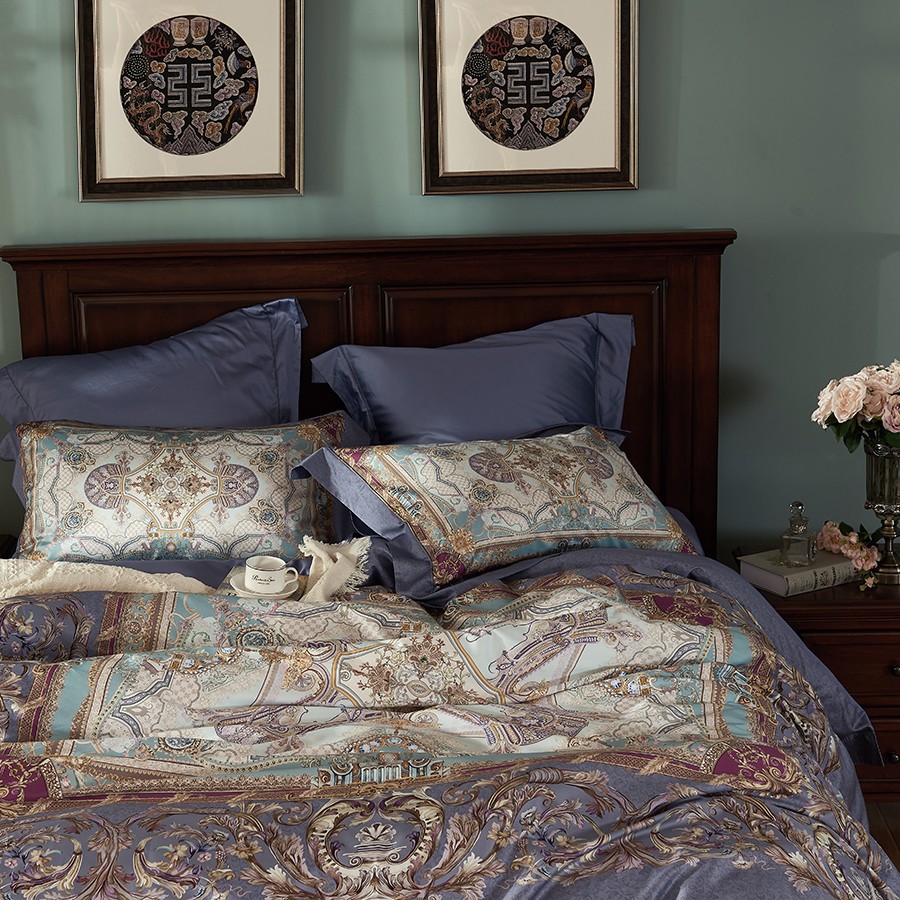 床上用品 纯棉四件套 蕾丝工艺 数码印花系列 锦绣时光(紫)