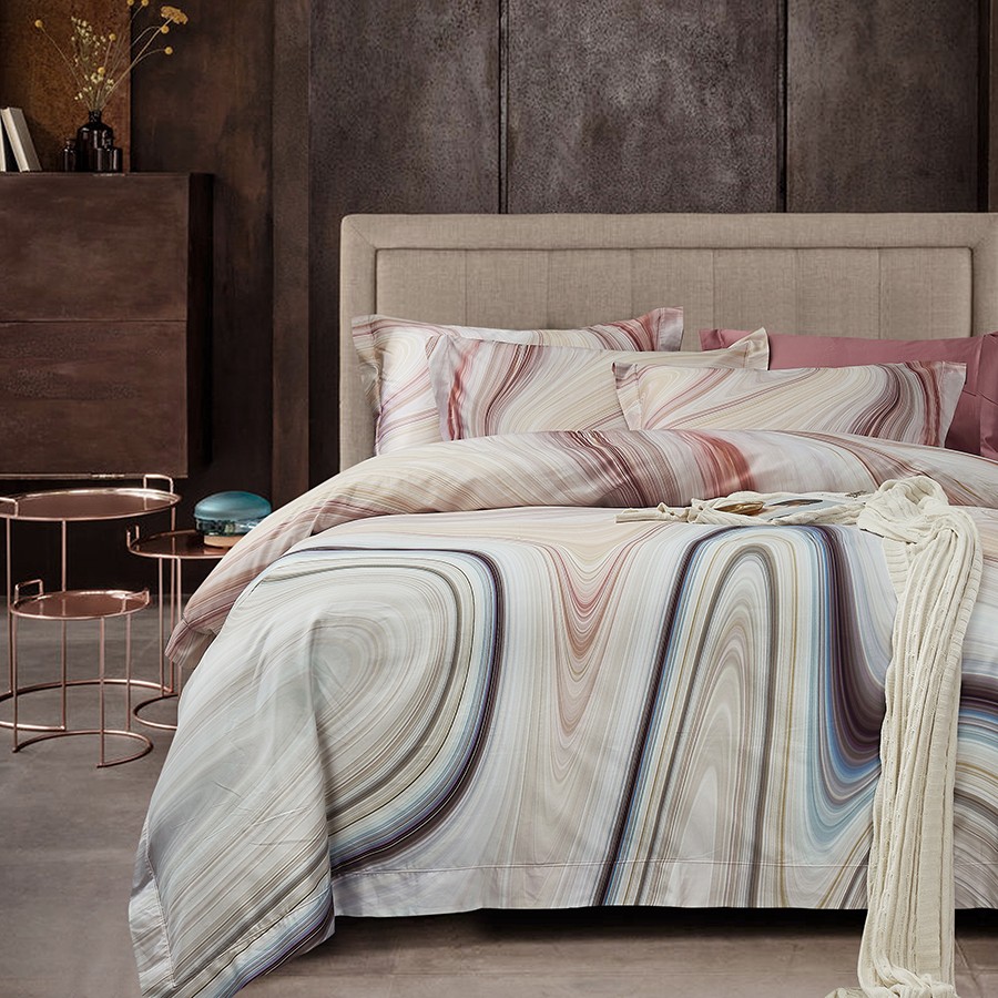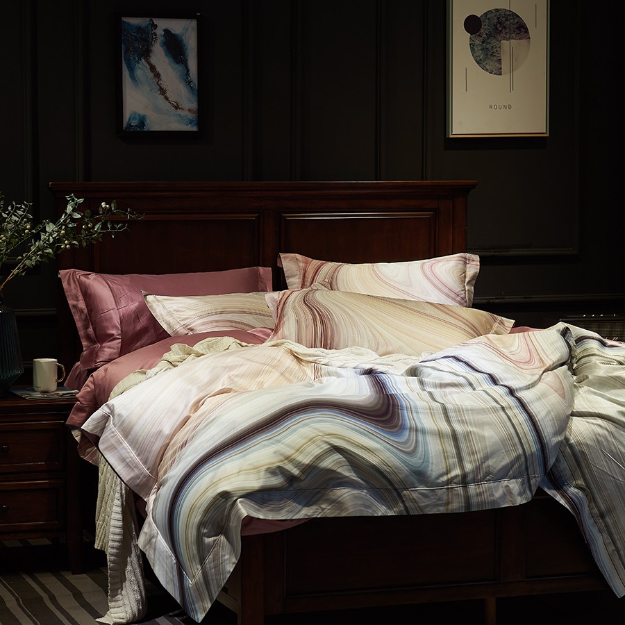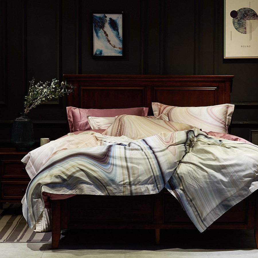 床上用品 纯棉四件套 蕾丝工艺 数码印花系列 岩栖谷隐(豆沙)