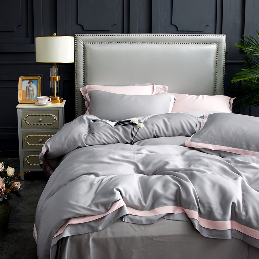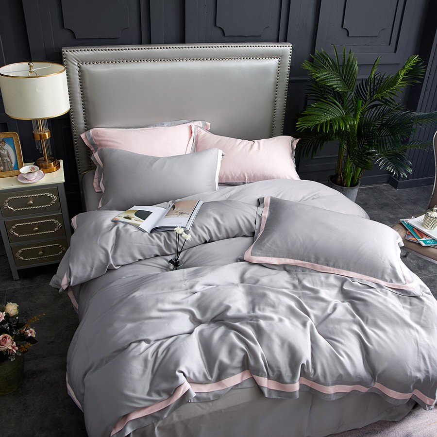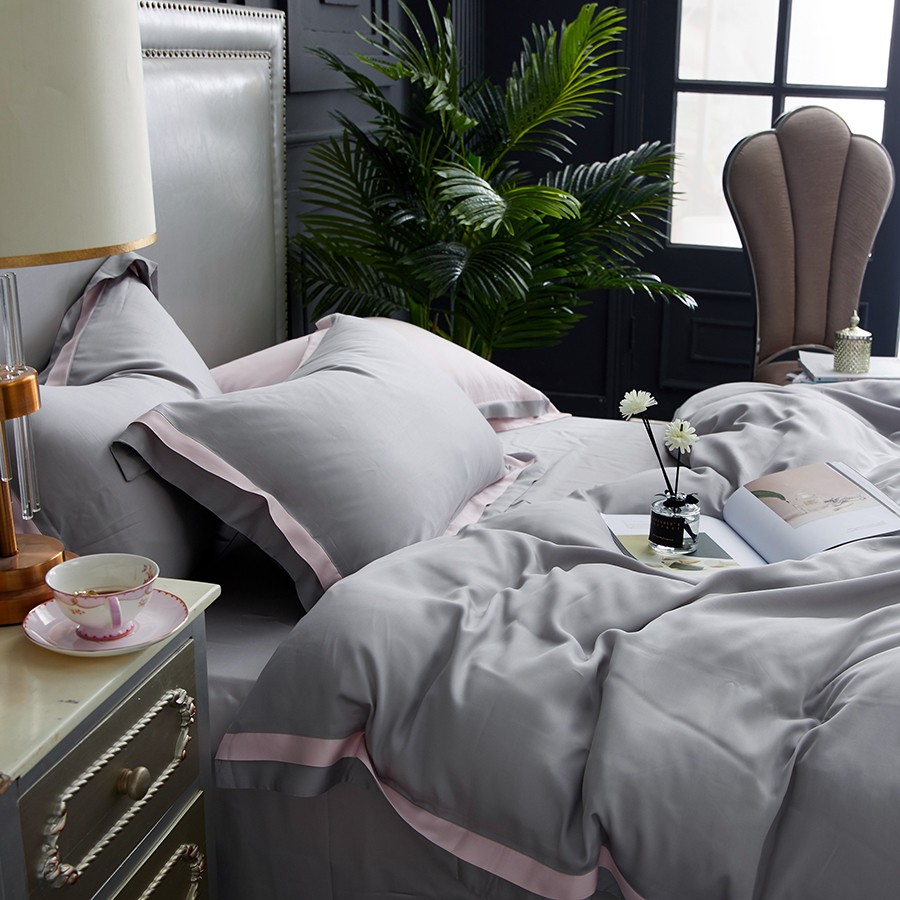 床上用品 纯棉四件套 蕾丝工艺 60天丝纯色工艺系列 浅灰