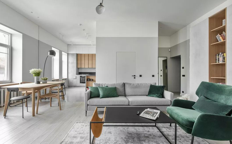 绿色是极具生命力的色彩,它生机盎然、清新雅致,与略带冷感的高级灰相结合,不仅可以瞬间唤醒空间活力,给人一种亲近大自然的感觉,又以一股沉稳安静的力量,让人充分感受到家的治愈与放松。